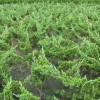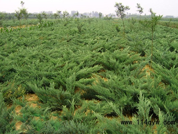 鋪地柏是一種矮小的柏科圓柏屬灌木,原生于日本南部。系柏科常綠匍匐小灌木,高達75厘米,冠幅逾2米。枝干貼近地面伸展,褐色,小枝密生。枝梢及小枝向上斜展。葉均為刺形葉,先端尖銳,3葉交叉互輪生,條狀披針形,先端漸尖成角質銳尖頭,長6-8毫米,上面凹,表面有2條白色氣孔帶,下面基部有二個白粉氣孔,氣孔帶常在上部匯合,綠色中脈僅下部明顯,不達葉之先端,下面凸起,藍綠色,沿中脈有細縱槽。葉基下延生長;球果近球形,被白粉,成熟時黑色,徑8-9毫米,有2-3粒種子;種子長約4毫米,有棱脊。匍匐枝懸垂倒掛,古雅別致,是制作懸崖式盆景的良好材料。