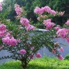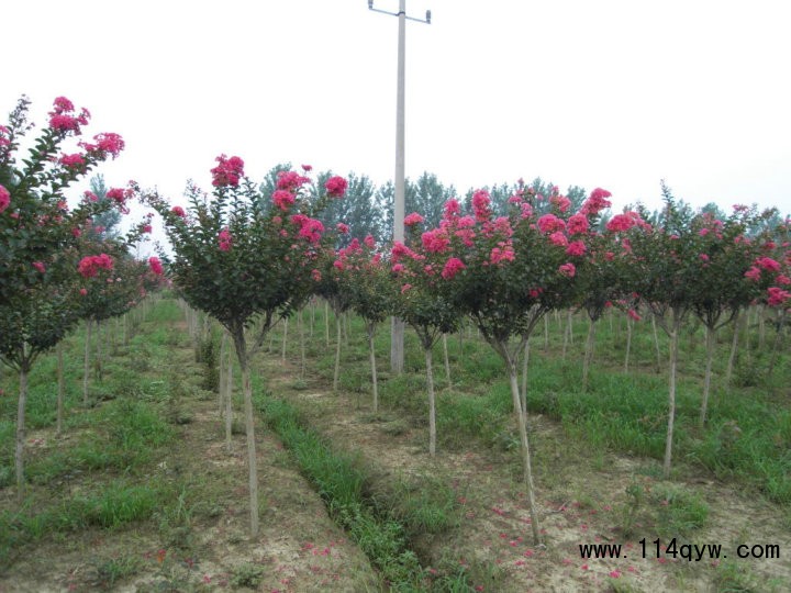 紫薇,別名:癢癢花、癢癢樹、紫金花、紫蘭花、蚊子花、西洋水楊梅、百日紅、無皮樹,拉丁文名:Lagerstroemia indica L. 千屈菜科、紫薇屬落葉灌木或小喬木,高可達7米;樹皮平滑,灰色或灰褐色;枝干多扭曲,小枝纖細,葉互生或有時對生,紙質,橢圓形、闊矩圓形或倒卵形,幼時綠色至黃色,成熟時或干燥時呈紫黑色,室背開裂;種子有翅,長約8毫米。花期6-9月,果期9-12月。紫薇樹姿優美,樹干光滑潔凈,花色艷麗;開花時正當夏秋少花季節,花期長,故有“百日紅”之稱,又有“盛夏綠遮眼,此花紅滿堂”的贊語,是觀花、觀干、觀根的盆景良材;根、皮、葉、花皆可入藥。