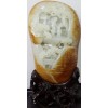 本擺件為和田籽料,玉質潔白細膩、外層帶棗紅皮色,由雕刻大師劉月川精心雕刻在一個不大的空間里展現了樓閣、松樹、母親、孩子,層層疊...