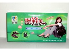 擦鞋巾(也稱擦鞋紙):一種特殊的紙,無需鞋油鞋刷,對各色皮鞋、皮衣一擦即亮(無需象用鞋油鞋刷那樣反復擦刷才會亮),而且效果比用鞋油更光亮,光亮更持久,不沾灰塵,并起護革作用,本品以水溶合成樹脂為原液基質(zhì),原液中配以其它輔助原料精制而成的一次性擦鞋巾